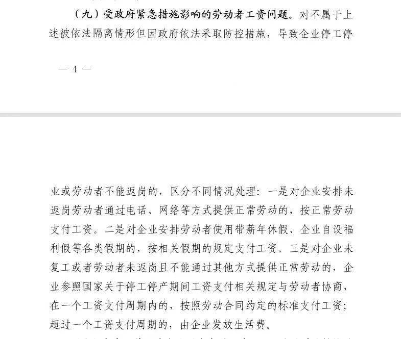 2022年4月26日,上海市人保局印发《关于进一步维护当前劳动关系和谐稳定的工作指引》(沪人社关[2022]89号),新规核心内容总计17条,旨在规范上海疫情特殊期间劳动关系的政策适用,对用人单位的用工操作将产生较大影响,笔者尝试解读一二。 解析:从文件性质来看,属于地方劳动行政部门发布的规范性文件,虽然并非法律法规,但劳动争议仲裁委员会在审理案件时仍可以援引和参考,故可以作为用人单位开展劳动人事管理的政策依据之一。 解析:从“总体要求”角度,新规执行“双保护原则”,既强调“保障劳动者合法权益”又需兼顾“支持企业复工复产”,故从策略上还是大力支持企业和劳动者自行“协商”,互谅互让,尽可能通过民主协商找到最大公约数。而强调协商,则意味着加强劳资内部“自治”,减少政府强力“管制”,企业可以根据经营状况灵活制定相关疫情自救策略。 解析:劳动合同订立和续订因疫情原因无法及时办理,可通过两种方式解决:(1)与员工沟通顺延签订合同的时间,文件表述为“协商等方式”,未强调协商一致,亦可通过告知的方式执行,即便没有告知导致合同未及时签订,笔者认为基于不可抗力的原则,仲裁和法院也不会轻易判决公司支付未签书面合同的二倍工资,但稳妥起见建议用人单位与员工积极履行沟通义务并保留相关沟通的证据(如微信、短信、邮件通知等);(2)通过电子方式完成合同签订或续订,如通过微信、钉钉、邮件、电子数据平台确认等方式执行合同签订或续签,如员工对合同内容明确表示无异议的,可视为双方已签订或续订了书面劳动合同。如用人单位事后不安排补签的,建议保留好相关电子数据,避免事后发生争议无法举证。 解析:企业因疫情遭遇经营压力可以采取相关自救措施,包括停工停产、降薪、轮岗轮休、调剂休息日等,但由于这些措施同时涉及员工切身利益,故应当按照《劳动合同法》第四条规定履行民主和公示程序。本条强调企业执行相关调整措施应履行法定民主程序,意味着未来发生类似案件将强化民主程序的合法性审查。而对民主程序的落地方式,指引作出了相应的放宽规定,具体为:(1)沟通形式放宽,即可以包括电子邮件、OA系统、微信群组、电话会议、腾讯会议、TEAM会议等;(2)沟通主体放宽,即可以直接向工会或职工代表征求意见,而非需要听取所有员工意见。当然方案一般仅限于疫情期间。假如用人单位未履行民主程序,而直接以通知、告知的方式执行调整措施,笔者认为如果企业确实受疫情影较大,方案公平合理,员工也未提出异议,如事后员工再要求补发工资等,一般也难以支持。但考虑风险控制,仍建议用人单位履行民主程序并固定相关证据。同样的,指引虽强调“协商确定”,但并未强求“协商一致确定”,也符合民主程序“共议单决”的特点。 相关规定 《劳动合同法》 第四条 ......用人单位在制定、修改或者决定有关劳动报酬、工作时间、休息休假、劳动安全卫生、保险福利、职工培训、劳动纪律以及劳动定额管理等直接涉及劳动者切身利益的规章制度或者重大事项时, 应当经职工代表大会或者全体职工讨论,提出方案和意见,与工会或者职工代表平等协商确定。 ......用人单位应当将直接涉及劳动者切身利益的规章制度和重大事项决定公示,或者告知劳动者。 解析:本条明确居家办公由企业“合理安排”,即肯定了用人单位在居家办公上的自主权,换言之,员工不能单方决定居家办公或远程办公,如执行居家办公应获得企业批准或由企业主动安排之。此外,企业可以优先安排各类假期,根据《职工带薪年休假条例》等相关规定,年休假的使用需听取员工意见,但最终决定权仍在用人单位,员工无权直接拒绝企业对年假的统筹安排,如劳动者以未征得其同意为由主张已休年休假无效,请求用人单位支付应休未休年休假工资报酬的,一般不予支持。 由于此条适用“劳动者不能返岗的”情形,故对于因疫情防控居家隔离的,应同等适用。但对于确诊病例、疑似病例或密切接触者被集中隔离的,应视为正常劳动,无法安排居家办公或休假。 解析:本条明确规定了四类特殊群体:(1)确诊患者;(2)无症状感染者;(3)密接;(4)政府封控导致不能正常提供劳动的劳动者。对于上述四类群体,用人单位不能仅仅因为存在上述理由解除劳动合同,但此条未表述为“企业不得与其解除劳动合同”,可见如果存在严重违纪等法定解除情形,企业仍可依法解除劳动合同。指引进一步明确,对于上述四类群体,如果被追究刑事责任或被行政处罚的,企业仍可以依法或依照规章制度解除劳动合同。 按照人社部相关意见,用人单位亦不得依照《劳动合同法》第四十条、第四十一条解除上述四类群体,但本指引未作规定。 相关规定 人力资源社会保障部办公厅《关于妥善处理新型冠状病毒感染的肺炎疫情防控期间劳动关系问题的通知》人社厅发明电[2020]5号 一、 对新型冠状病毒感染的肺炎患者、疑似病人、密切接触者在其隔离治疗期间或医学观察期间以及因政府实施隔离措施或采取其他紧急措施导致不能提供正常劳动的企业职工,企业应当支付职工在此期间的工作报酬,并不得依据劳动合同法 第四十条、四十一条与职工解除劳动合同。 解析:本条明确四类群体劳动合同到期终止的,应顺延至相应情形消失,此不仅导致用人单位工资成